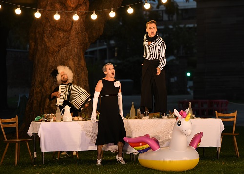 Unter der Platane im Hof der Karlskaserne laden die beiden Schwestern zu einer Geburtstagstafel mit Musik.